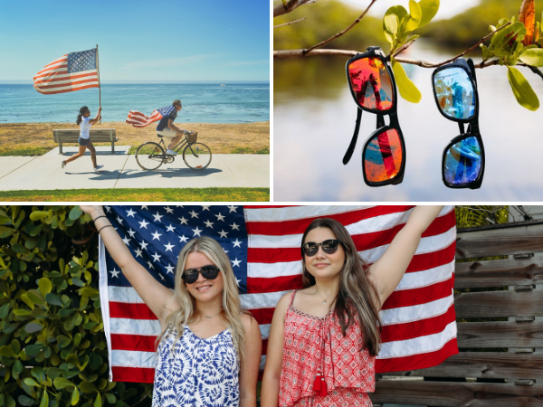 Highlight our Limited Edition Ol' Glories sunglasses in a fun and celebratory nature associated with the 4th of July type celebrations and activities. Utilize the theme of Red, White, & Blue, Stars & Stripes, Patriotic, 4th of July! Be creative, adventurous and fun!